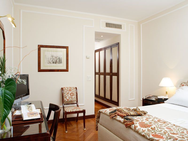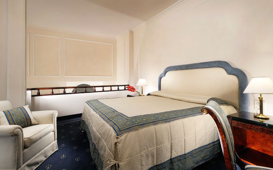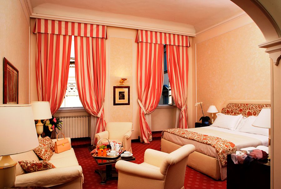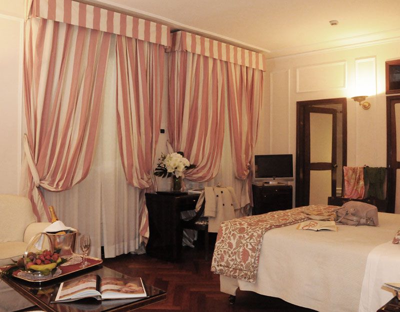 Every detail, from the refined upholsteries to the curtains, from the furniture on classic style to the tone of the accessory colours, is realized in order to offer the guests a pleasant stay in this wonderful charming hotel in Florence.