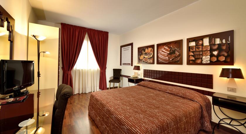 The Etruscan Chocohotel is distinguished by its originality and for its excellent location. In the lobby, you will find the Chocostore, stocked with products from the best chocolate factory of Perugia and a section dedicated to chocolate from all over the world. You can admire a valuable collection of statues and chocolate wrappers, can find gadgets, posters, ceramic cups, cases for Ipad and Iphone, t-shirts and sweatshirts themed around chocolate! Rates of absolute convenience and possibility of business conventions.